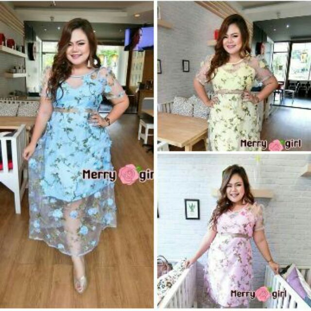 เดรสออกงาน สาวอวบ อ้วน ผ้าแก้วดอกลอย 3D มีซับในตัว ผ้าเนื้อดี ตัดเย็บดีมาก งานเรียบหรู สไตล์คุณหนู มีไซส์ รอบอก46และ รอบอก52