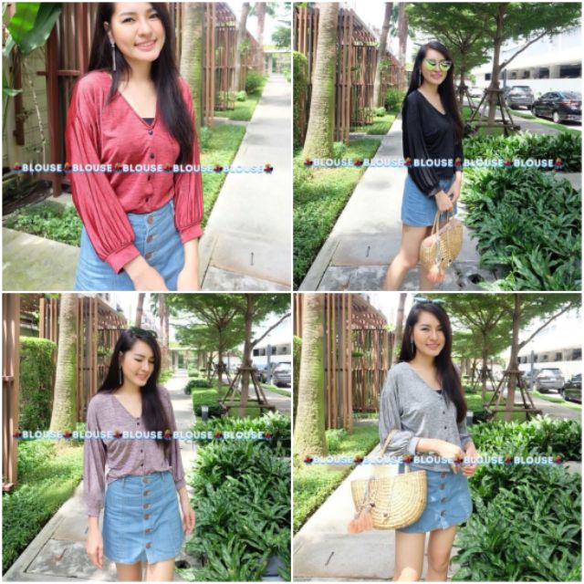 รอบอก42เสื้อคอวี ติดกระดุม ผ้าทอยืดขัดเงาเพิ่มกลิ๊ตเตอร์วิ้งงงงระยิบระยับสวยเก๋ค่ะ