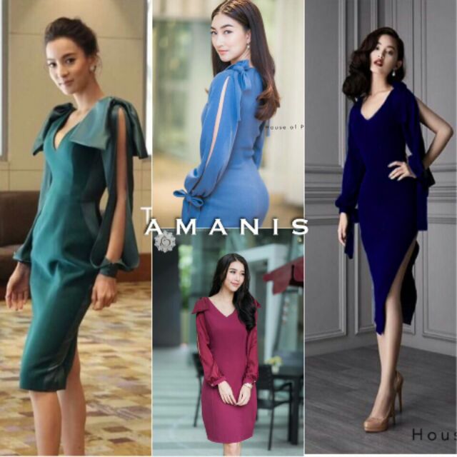 เดรส แขนยาวคอวีหน้า-หลัง ชุดราตรีสั้น เสื้อผ้าสาวอวบ ชุดเดรสยาว ชุดคนอ้วน ขายส่ง สินค้าขายดี ชุด dress
