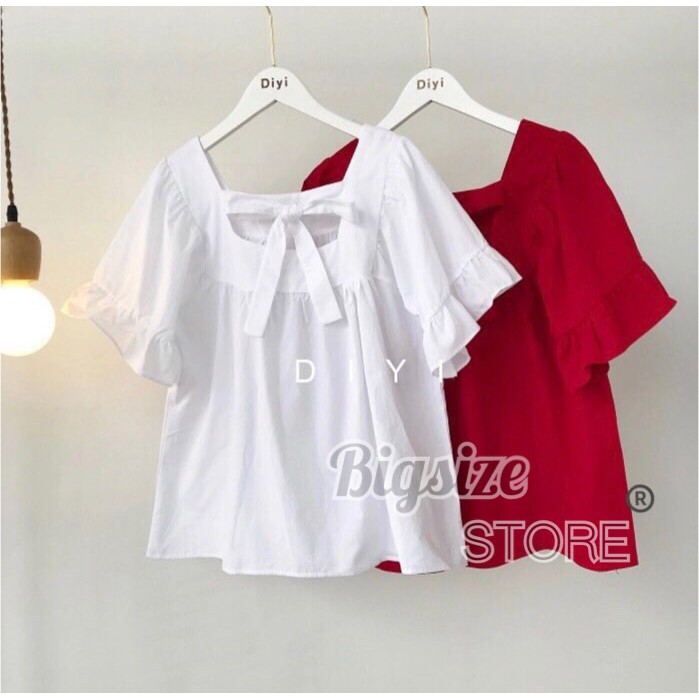 | เสื้อ แขนระบาย แต่ง สไตล์เกาหลีทรงน่ารักๆ สาวอวบ มีผูกโบว์ช่วงอก ผ้า |