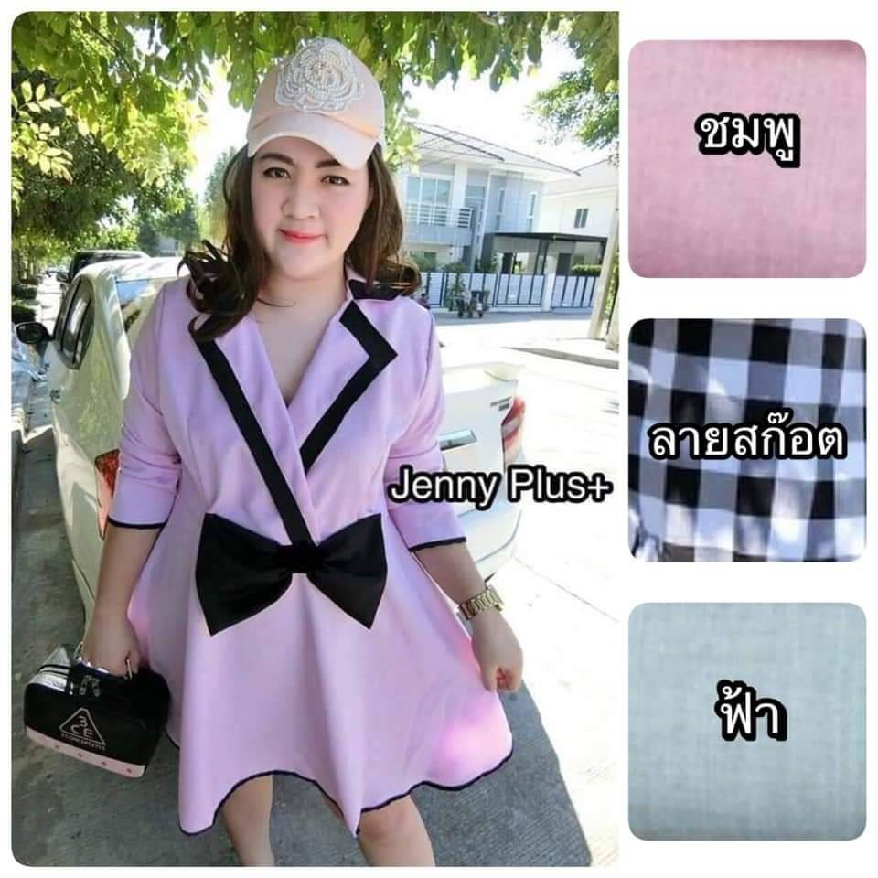 เสื้อ ผ้า สาวอวบ เดรสทรงสูท ติดโบว์ แขนยาว