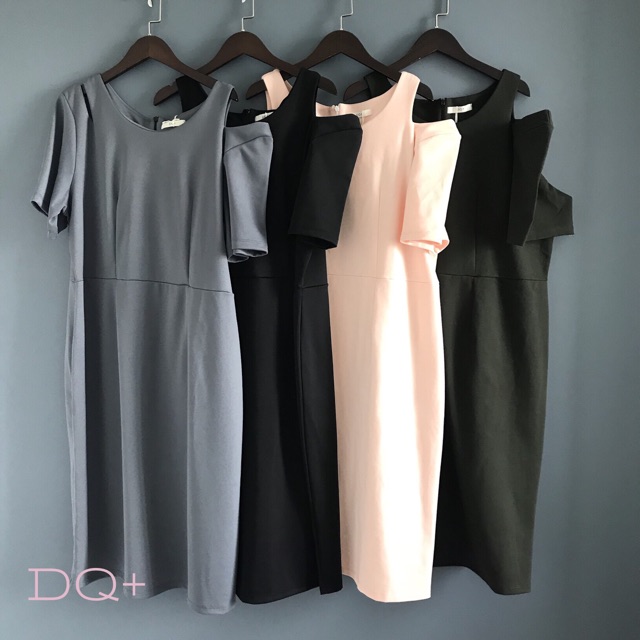 มีเก็บเงินปลายทาง เดรสเข้ารูป แขนสั้นเจาะช่องที่ไหล่ ผ้าปุนโตยืดหยุ่นได้ดีค่ะ BUSAYAเสื้อ ผ้าไซส์ใหญ่