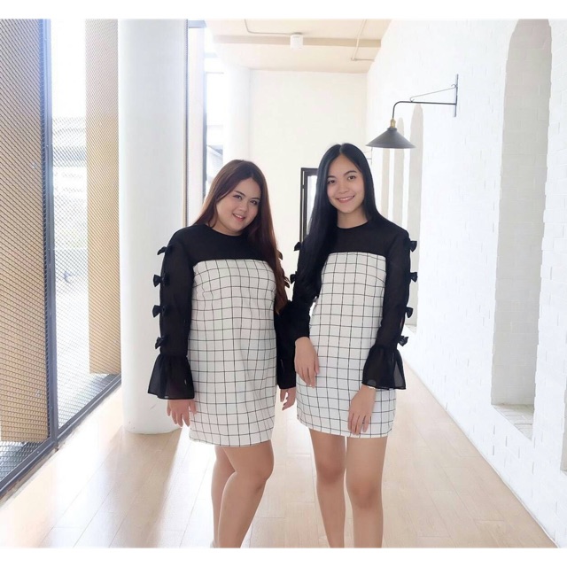 | สาวอวบอ้วน รีวิว นำเข้า dress ขายส่ง ราคาส่ง เดรส แขนโบว์ลายตาราง |