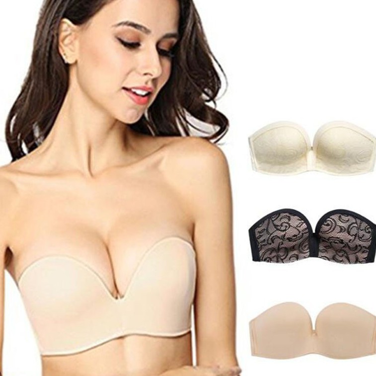 การออกแบบที่ไม่ มีสายหนัง บราเกาะอกกันเลื่อนหลุด ดันทรง อกสวย Locking-Bra