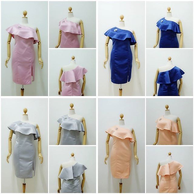 ชุดเดรสออกงาน เนื้อ ผ้าดัชเชสซาติน ทรงโรมันแต่งระบายอก ทรงเอ แพทเทิร์นสวยค่ะใส่ซิป ด้านหลัง