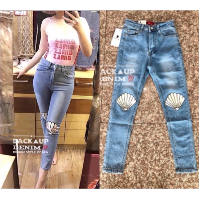 | หอย เอวสูง เสื้อ กางเกงยีนส์ ผ้ายืด สาวอวบ ไซส์ใหญ่ ติดกากเพชร ขายาว ผ้า |