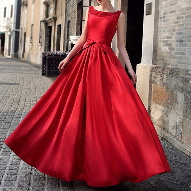 ผู้หญิง ย้อนยุค เหล้าองุ่น 60S-70S สง่า แต่งตัว พรรค ตอนเย็น ค็อกเทล ไม่ เป็นทางการ เดรส
