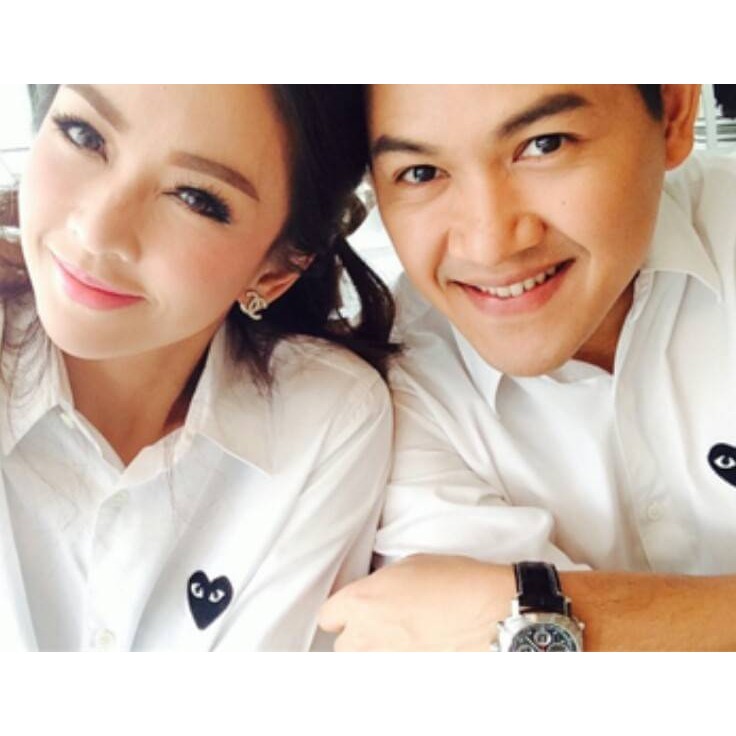 | ชุดคู่รักไซส์ใหญ่ คู่รักคนอ้วน ขาว ชุดคู่รักเชิ้ต ปักหัวใจสีดำ |