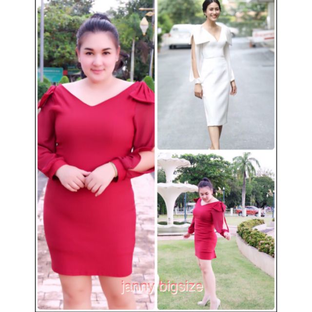 เดรสราตรี สาวอวบสลินนี่ แขนชีฟองผ่าโบว์