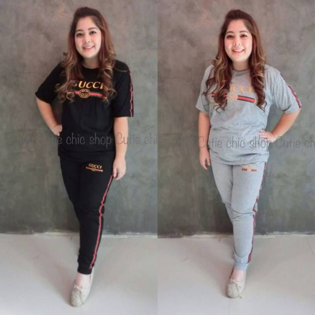 ชุด สาวอวบ เซทเสื้อกับกางเกง ขายาวตีแถบ สกรีนลายสวยๆ