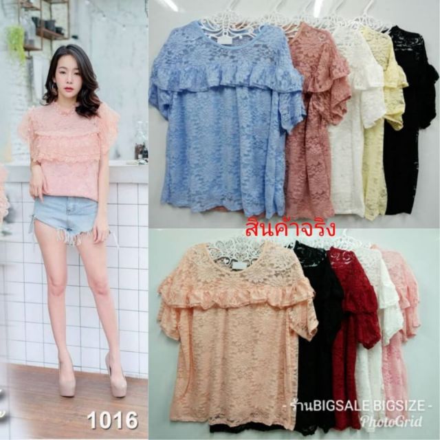 เสื้อลูกไม้ สาวอวบแต่งระบายอก44"ยืดสุด50"