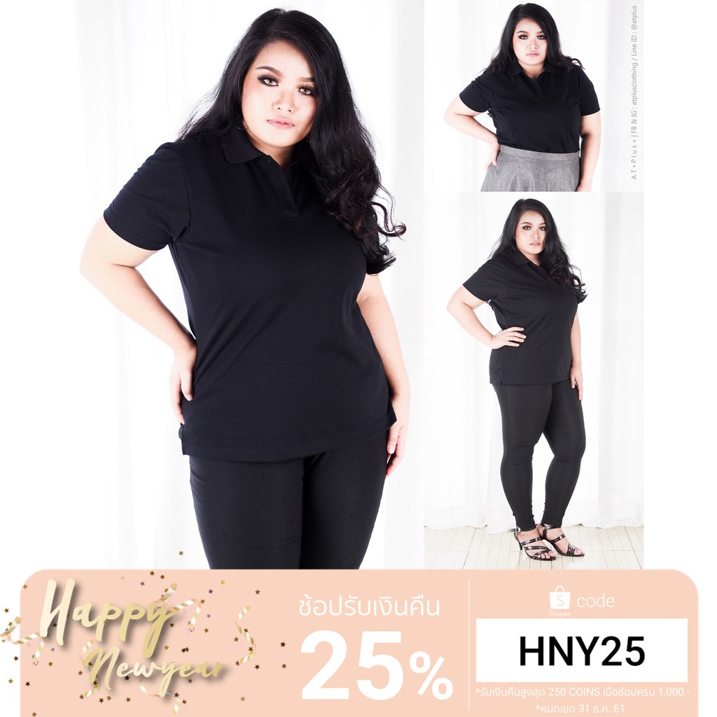 | - สีดำ เสื้อโปโล สาวอวบ 44 B0061 ผ้าคนอ้วน รอบอก นิ้ว ผ้าไซส์ใหญ่ เสื้อ |