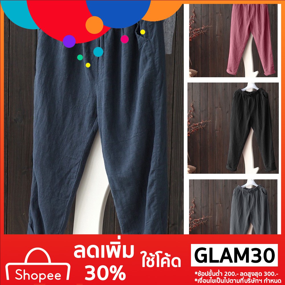 | ขายาว ราคา กางเกง โค้ดGLAM30 ผ้าลินินทรงหลวมสำหรับผู้หญิง ลด30% ชุดแซก |
