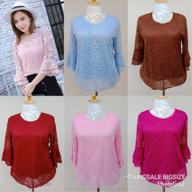 เสื้อลูกไม้ สาวอวบ แขน3ส่วน อก42"-46"