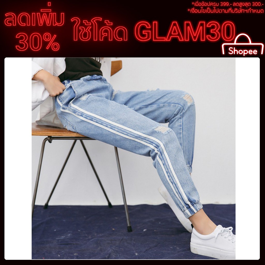 ใช้ โค้ดGLAM ลด30% ด่วนๆ ขายาวสำหรับสตรี เอวสูง ขนาดใหญ่ !ใหม่กางเกงยีนส์