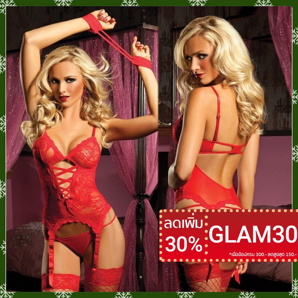 ค้ด ลด30% ชุดว่ายน้ำเซ็กซี่ชุดชั้นในสตรีชุดชั้นในตอนกลางคืนชุดนอนชุดนอน ปักลาย GLAM30 CB2 Babydoll-Lace + G-String