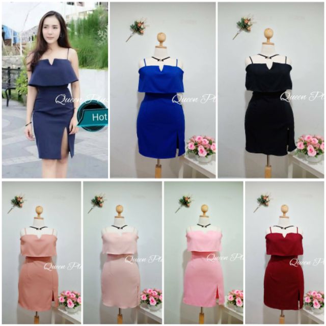 เดรสสายเดี่ยวผ่าหน้า ลดราคา ชุดราตรีสั้น สินค้าขายดี ชุดเดรสสั้น ชุดคนอ้วน ขายส่ง ชุด 10-Bigsize dress