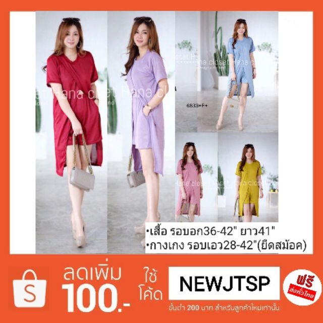 # สาวอวบ เสื้อคอกลม แขนสั้นตัวยาว ขาสั้น มีกระเป๋า 6833