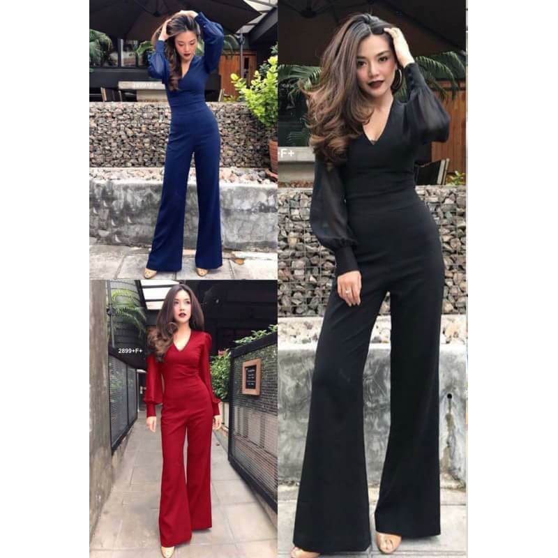 | คอวีแขนระบาย มีผูกเอวเส้นใหญ่ XL จั้มสูทสาว |