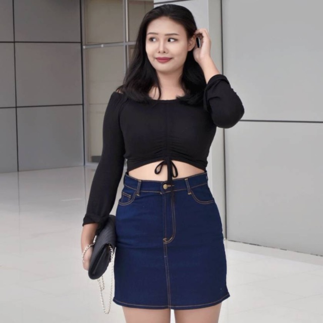 เสื้อ ผ้าคนอ้วน กระโปรงยีนส์ ผ้ายืด