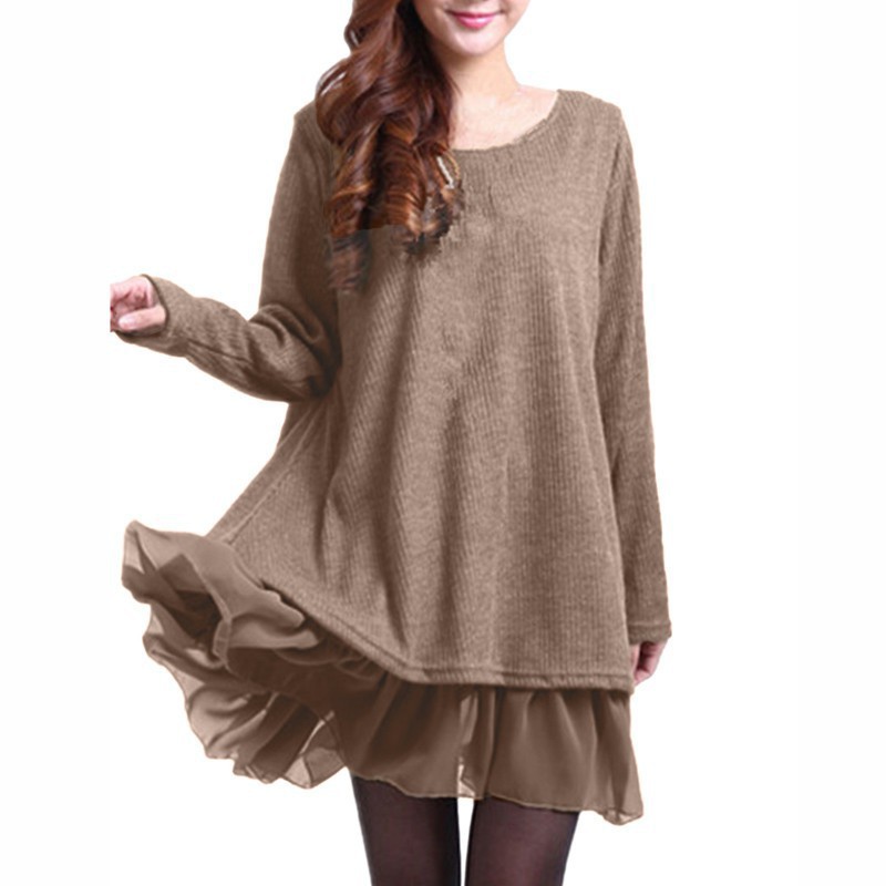 ชุดมินิเดรส แขนยาว Plus-Size แฟชั่นสำหรับสตรี