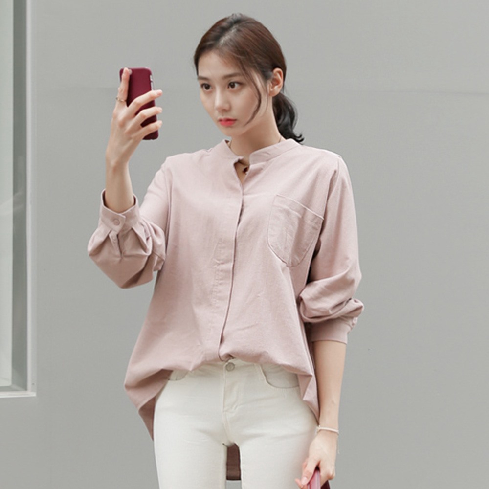 | ผ้าลินิน แขนยาวสี สไตล์เกาหลี ขาวทรงหลวม เสื้อลำลองสำหรับสตรี |