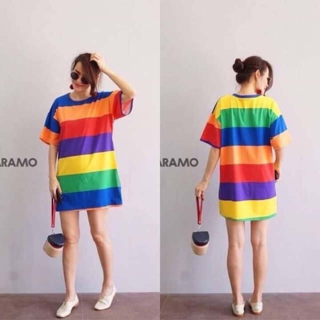 RAINBOW OVERSIZE มินิเดรส สาวอวบ สีรุ้ง