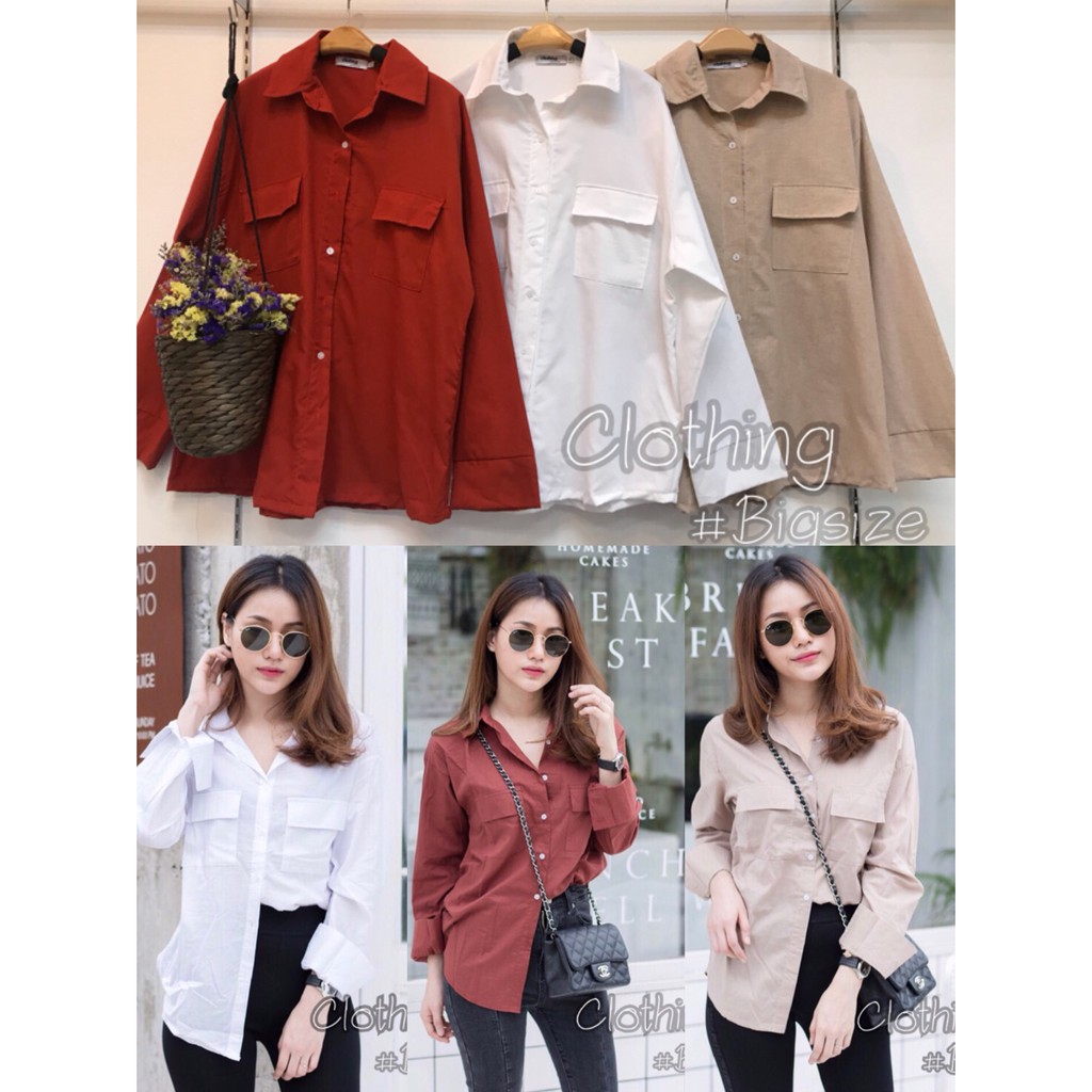 เสื้อเชิ๊ตทรงเบสิค เสื้อเชิ๊ตทำงาน สาวบิ๊กไซส์ ผ้าcotton-oxford เนื้อดีค่ะ ใส่ได้ทุกโอกาส มี2ไซส์ L40-46" XL46-50"