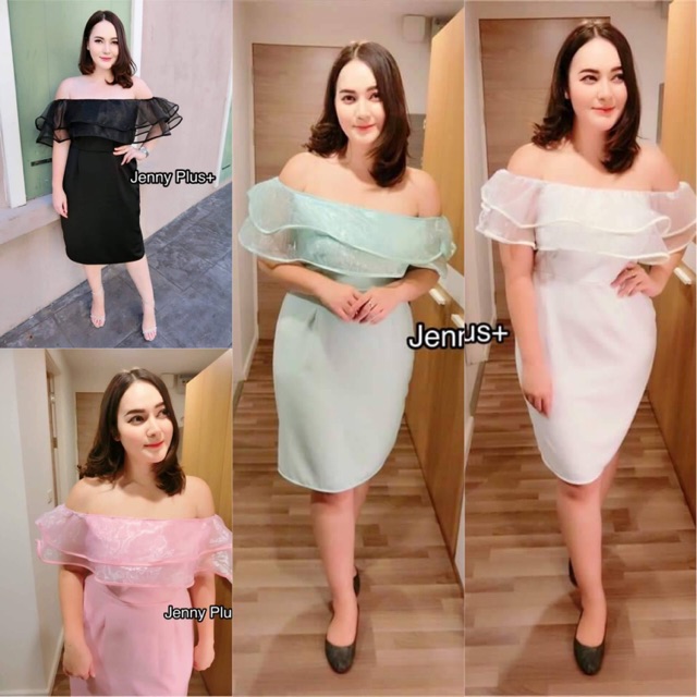 | เดรสทรงเปิดไหล่ เสื้อ ผ้าไซส์ใหญ่ แต่ง มีซิปหลังยาว ผ้าแก้วระบาย2ชั้นแน่นๆ เกรดดีเว่อร์ ผ้าฮานาโกะ ไม่บางจ้า PlusSize |